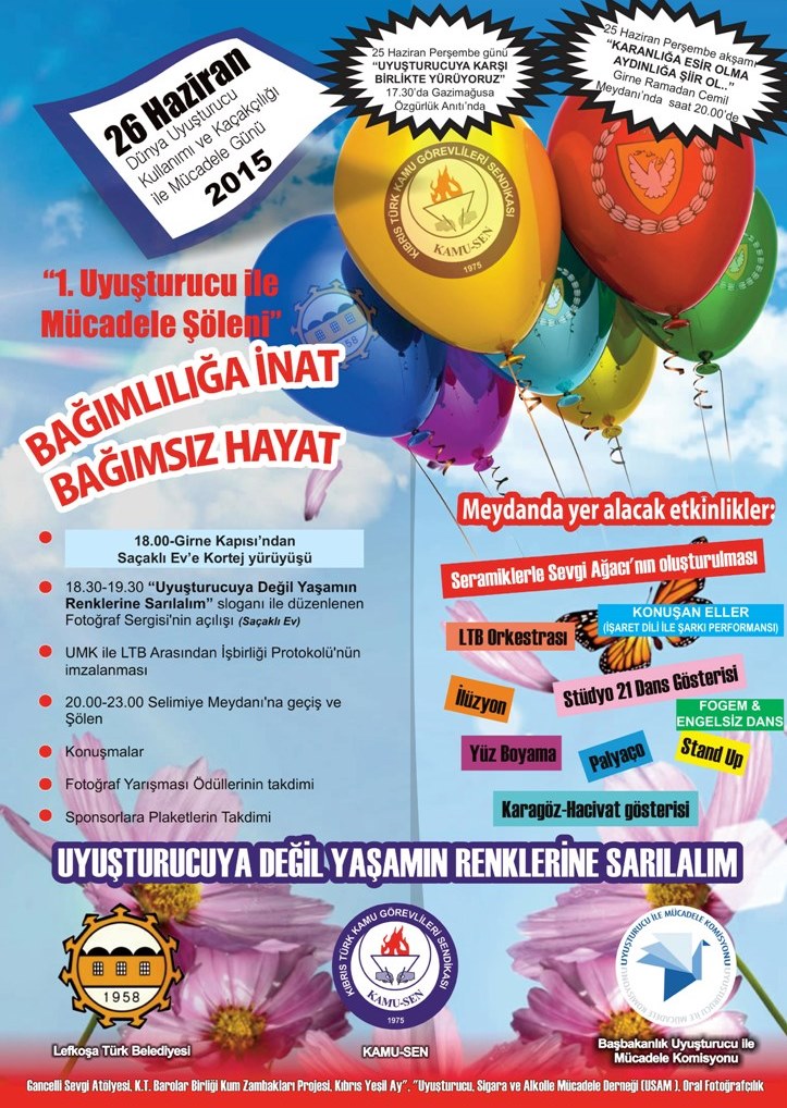 Etkinlikler, Başbakanlık Uyuşturucu ile Mücadele Komisyonu, Lefkoşa Türk Belediyesi, Gazimağusa Belediyesi, Girne Belediyesi, Kamu-Sen ve Gancelli Sevgi Atölyesi işbirliğinde ve bazı sivil toplum örgütlerinin katılımı ile yapılacak.