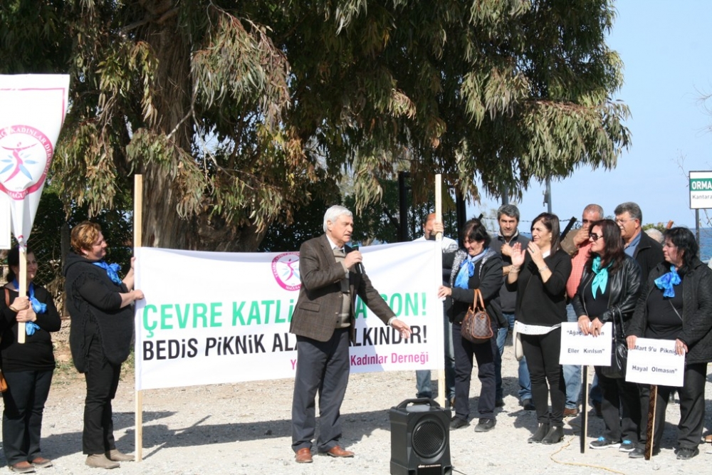 Bedi’s Piknik Alanı olarak bilinen bölgenin bir bölümünün, “özel bir şahsa kiralanmasını, halkın serbestçe kullanılmasının engellenmesini ve piknik alanının telle ikiye ayrılmasını” dün düzenlenen eylemle protesto edildi...