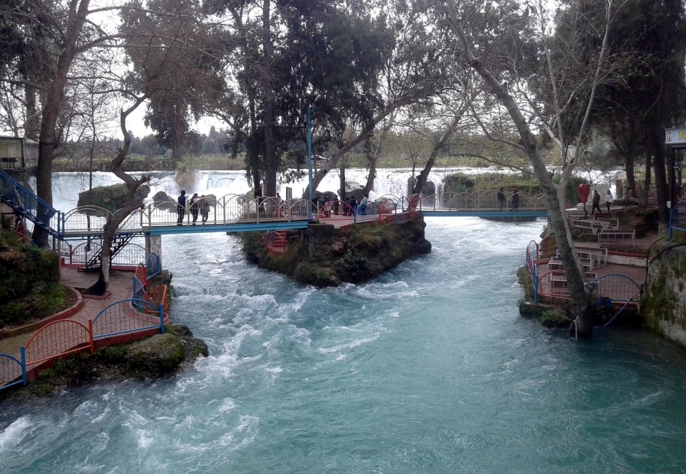 Balıklar ölmesin diye, suyu çekilen şelaleye hortumla su veriyor