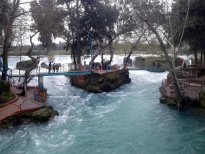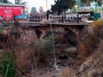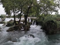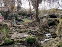 Balıklar ölmesin diye, suyu çekilen şelaleye hortumla su veriyor