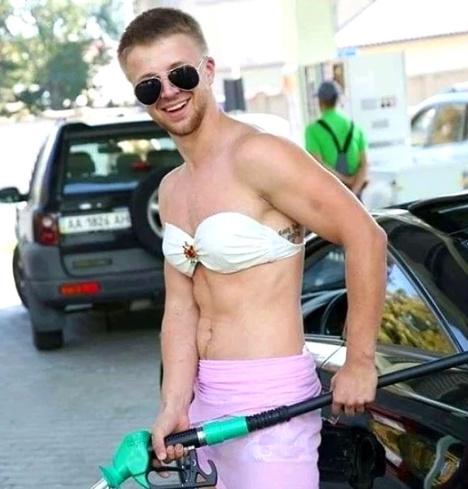 Rusya'nın Samara şehrinde bulunan bir benzin istasyonu, bikinili müşterilerine ücretsiz yakıt vereceğini duyurunca, erkek sürücüler de bikini giydi.