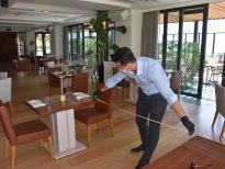 Muğla'nın Bodrum ilçesindeki otellerde haziran ayında açılacak sezon öncesi çalışmalar hızlandı. Corana virüse karşı alınan tedbirler kapsamında otellerdeki ortak kullanım alanları ölçülerek sosyal mesafe kurallarına göre düzenlendi.