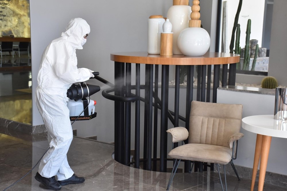 Muğla'nın Bodrum ilçesindeki otellerde haziran ayında açılacak sezon öncesi çalışmalar hızlandı. Corana virüse karşı alınan tedbirler kapsamında otellerdeki ortak kullanım alanları ölçülerek sosyal mesafe kurallarına göre düzenlendi.