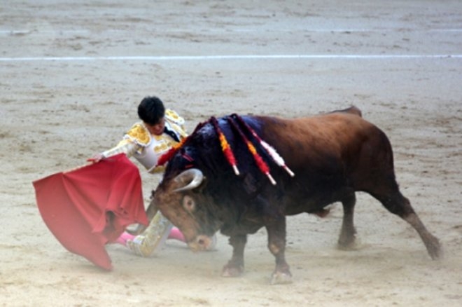 Darbe aldıktan sonra da boğayla oyuna devam etti.