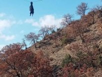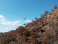 Boynuzu tellere takılan keçi gökyüzünde böyle süzüldü