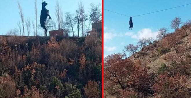 Boynuzu tellere takılan keçi gökyüzünde böyle süzüldü
