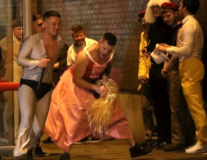 İngiltere'nin Leed şehrinde Cadılar Bayramı kutlamalarına erken başlayan öğrenciler, alkolün dozunu kaçırınca ortalığı dağıttılar.