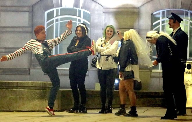 İngiltere'nin Leed şehrinde Cadılar Bayramı kutlamalarına erken başlayan öğrenciler, alkolün dozunu kaçırınca ortalığı dağıttılar.