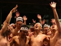 Japonya'nın Okyama kentinde düzenlenen festivale katılanlar sadece çorap ve peştemal giyiyor.