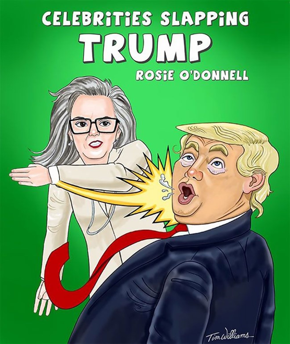 İllüstratör ve ressam Tim Williams, “Ünlüler Trump’a Tokat Atıyor” adını verdiği bir çizgi serisi hazırladı.