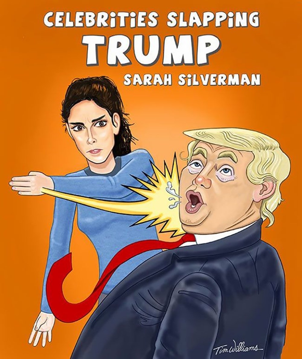 İllüstratör ve ressam Tim Williams, “Ünlüler Trump’a Tokat Atıyor” adını verdiği bir çizgi serisi hazırladı.