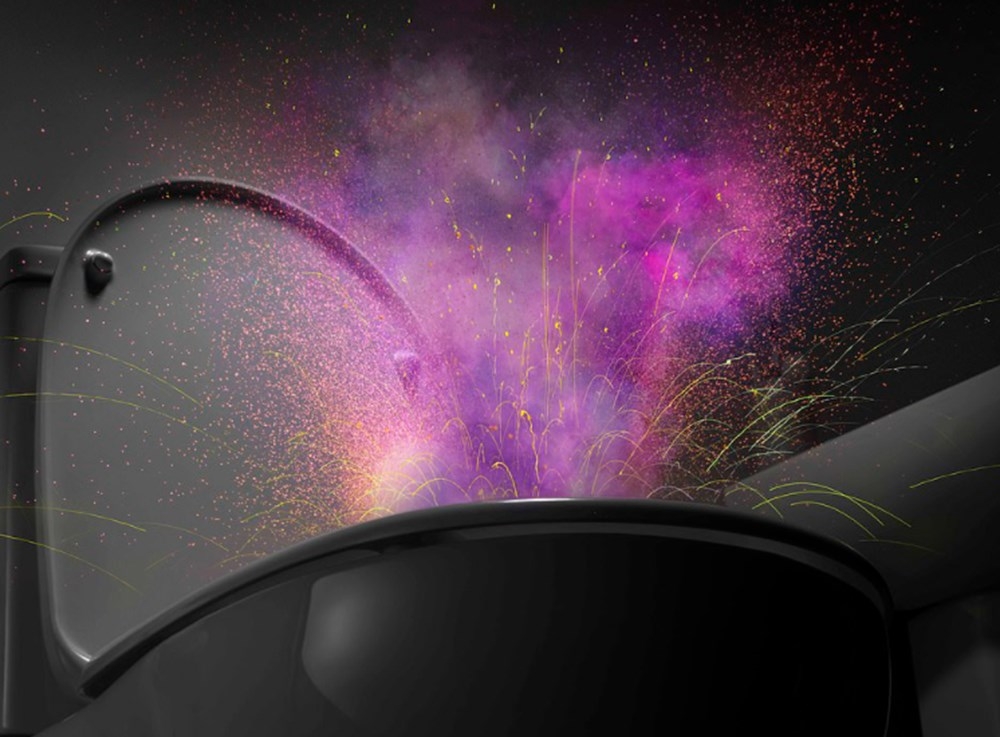 İngiltere’de bir kimya şirketi, yeni tip corona virüsün (Covid-19) tuvaletlerdeki yayılımına dikkat çekmek için, sifonun çekilmesiyle havaya yayılan virüs ve bakterileri yüksek hızda kameralar kullanarak görüntüledi