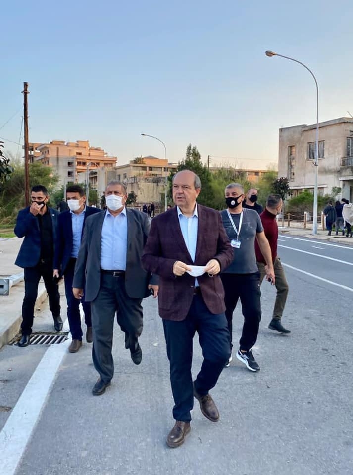 Cumhurbaşkanı Tatar’a, Kapalı Maraş turunda Tarım Bakanı Dursun Oğuz, Ulusal Birlik Partisi (UBP) Milletvekili Özdemir Berova ve Gazimağusa Belediye Başkanı İsmail Arter eşlik etti.