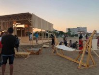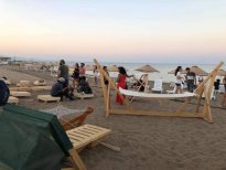 Türkiye MEF Üniversitesi Mimarlık Bölümü öğrencileri ve öğretim üyeleri ile birlikte kamu-yararı odaklı üretim ve deneyim için Yeni Boğaziçi Belediyesi Halk Plajı ihtiyaçlarının geliştirilmesine yönelik gerçekleştirilen projede büfe, yarı açık alanı, can kurtaran kulesi ile plajda kullanılmak üzere sezlong, hamak ve oturma birimleri tasarlandı.