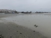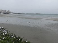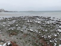 Silivri'de kar yağışı ile birlikte etkili olan fırtına nedeniyle deniz suyu yaklaşık 150 metre geri çekildi. Bu nedenle kum adası oluşurken, çöpler de ortaya çıktı.