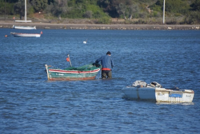 İzmir'in Seferihisar açıklarında meydana gelen depremin ardından, deniz suyunun taştığı Sığacık'ta, bugün denizin çekildiği görüldü.