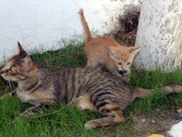 Derslere giren kedi ‘Tarçın’ teneffüslerde de yavrularıyla ilgileniyor