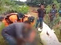 Endonezya'nın Borneo adasında nehre yüzmek için giren 8 yaşındaki çocuk, dev timsaha yem oldu. Ertesi gün yakalanan timsahın midesinden çocuğun cansız bedeninin çıkarılma anları yürekleri dağladı.