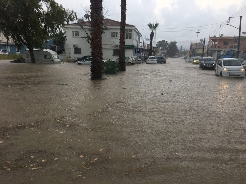 Etkili olan sağanak yağış sonrası İskele'de Sadıkoğlu Benzin İstasyonu yolu, Ali Yalçın İnşaat Malzemeleri yolu ve Ulu Market yolu trafiğe kapatıldı