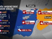 Suriye'nin Doğu Guta'da kimyasal silah kullanmasıyla başlayan kriz her dakika biraz daha tırmanırken, Doğu Akdeniz'e asker ve silah yığınağı da hızlandı. Peki Doğu Akdeniz'da hangi ülkenin ne kadar askeri üssü, savaş gemisi, askeri, füze sistemleri var?