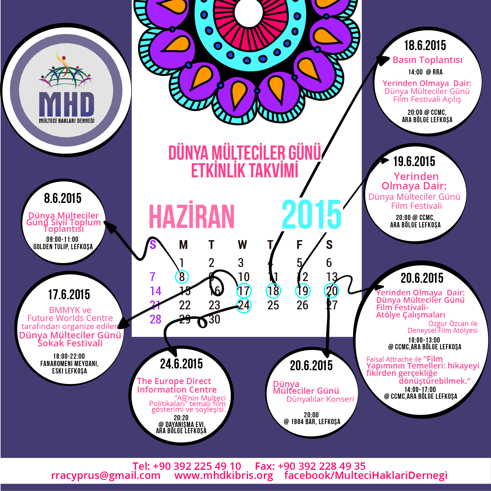 MHD ayrıca 17 Haziran’da Güney Lefkoşa Faneromeni Meydanı’nda gerçekleşecek sokak festivaline katılacak ve Kıbrıs’ta mülteci hakları alanında çalışan diğer örgütler ve mültecilerle beraber dans, yemek ve müzikle çok kültürlülüğü kutlayacak.