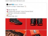 Rapçi Lil Nas X, MSCHF isimli bir sanat kolektifi ile birlikte, üzerinde bir damla insan kanı olan Satan Shoes (Şeytan Ayakkabılar) isimli spor ayakkabılar çıkardı