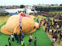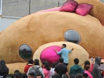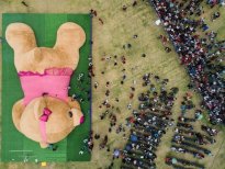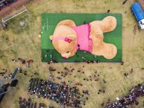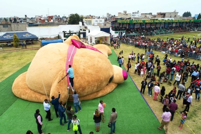 20 metre uzunluğunda ve 4 ton ağırlığındaki dünyanın en büyük oyuncak ayısı, Meksika'nın Xonacatlan kentinde görücüye çıktı.