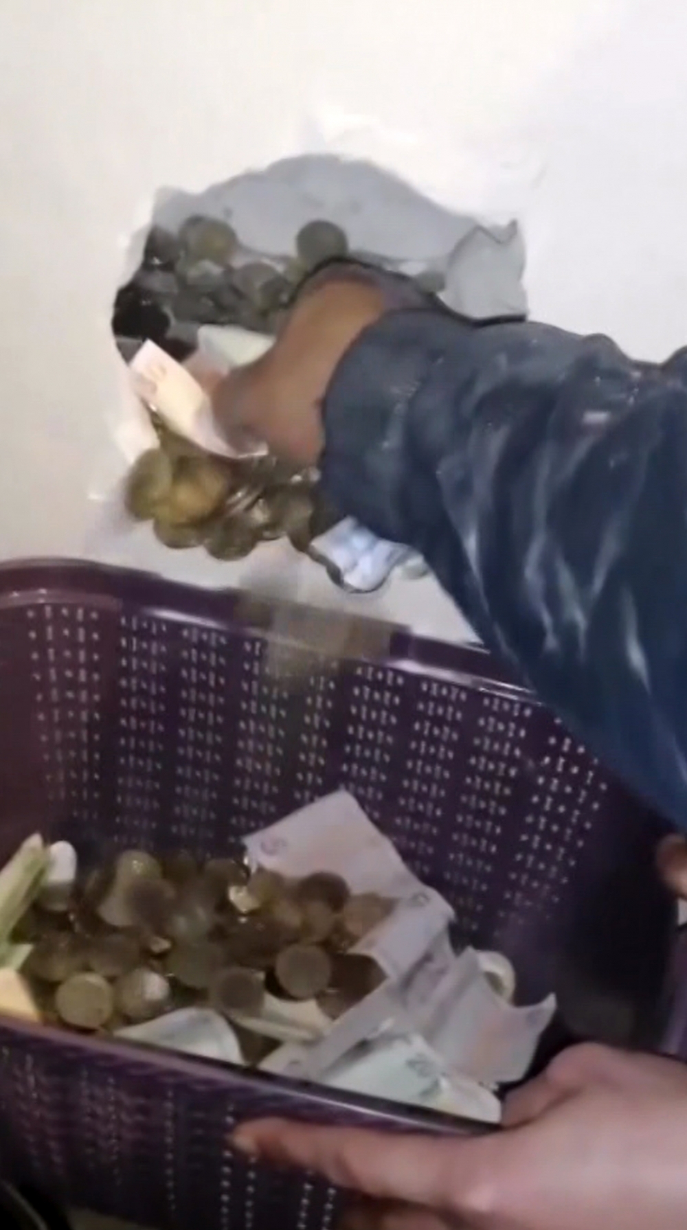 Yılbaşı gecesi eline çekiç alan kişi, oturduğu odanın kartonpiyer duvarını kırdı. Evdeki bir çocuğun "Aa para görüyorum" sözleri kamera kayıtlarına yansıdı.