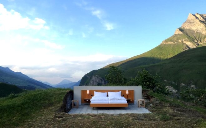 İsviçre Alpleri'nde yıldızları sayma deneyimi yaşatan Null Stern Oteli, benzersiz tasarımı ile görenleri şaşırtıyor. Duvarsız odalara sahip olan otel, misafirlerine İsviçre Alpleri'nin 360 derecelik manzarasında uyuma keyfi sağlıyor