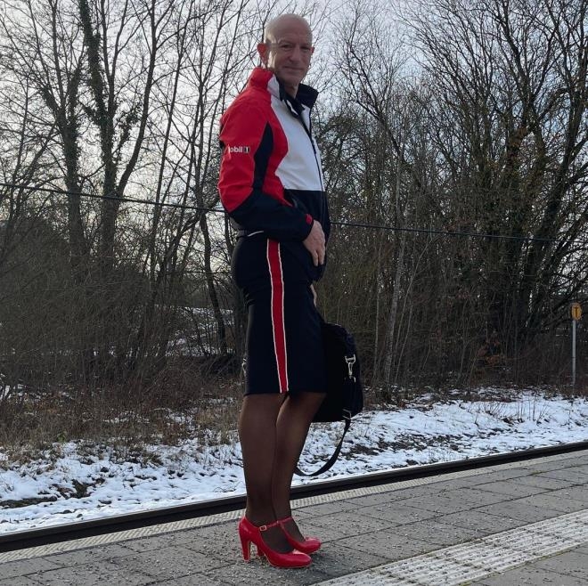 Almanya'da yaşayan Mark Byran isimli 61 yaşındaki adam, yıllardır işe kalem eteği ve birbirinden havalı topuklu ayakkabılarıyla gidiyor.