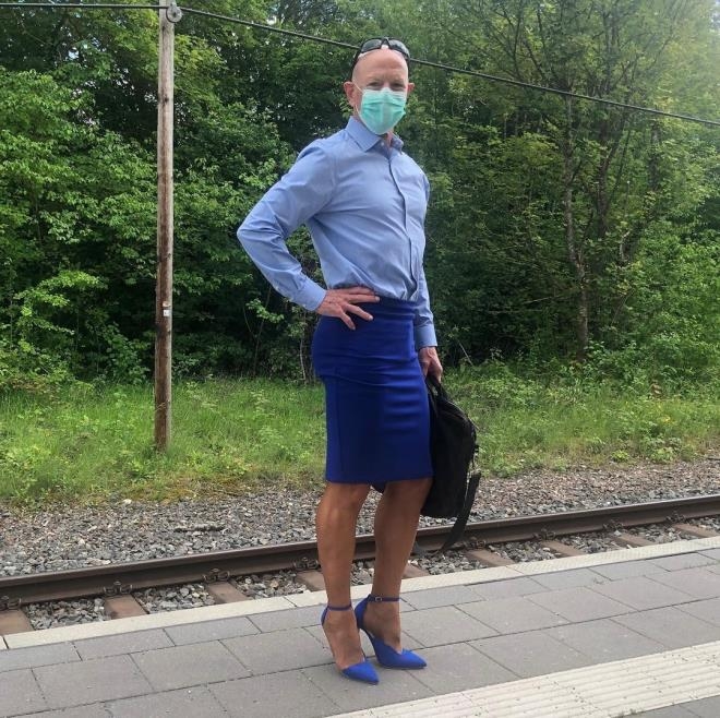 Almanya'da yaşayan Mark Byran isimli 61 yaşındaki adam, yıllardır işe kalem eteği ve birbirinden havalı topuklu ayakkabılarıyla gidiyor.