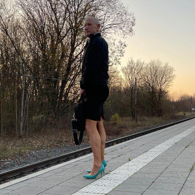 Almanya'da yaşayan Mark Byran isimli 61 yaşındaki adam, yıllardır işe kalem eteği ve birbirinden havalı topuklu ayakkabılarıyla gidiyor.