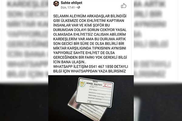 Facebook’ta ‘Sahte Ehliyet’ ismiyle açılan sayfada “sahte sürüş ehliyet yapılır” ilanı paylaşıldı.