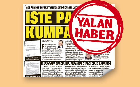 "Sabah Gazetesi ve Fotomaç yeni bir kumpas haberine imza attı. Daha önce şike davasındaki çelişkili ifadeleri ile gündeme gelen ve cinayet suçundan ağırlaştırılmış müebbet hapis cezasına çarptırılan Cihan Oskay’ın asılsız iddialarına dayanarak Zaman Gazetesi Genel Yayın Müdürü Ekrem Dumanlı’yı hedef gösterdi.