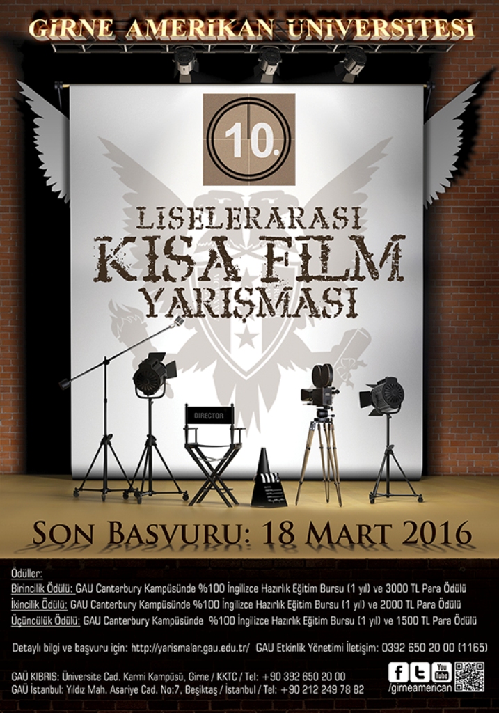 Yüksek Öğretimde 50. yılına doğru ilerleyen Girne Amerikan Üniversitesi tarafından düzenlenen “10. Liselerarası Kısa Film Yarışması” hikâyelerini beyaz perdeye taşımak isteyen genç yönetmen ve kısa filmcileri buluşturarak, hayallerini gerçekleştirmelerini ve eğitimlerine destek olmayı hedefliyor. GAÜ yarışma ile aynı zamanda sinema adına kendilerini geliştirmek isteyen gençlere, çalışmalarını sergileyebilecekleri ciddi ve profesyonel bir platform oluşturmanın yanıda, dereceye girenlere Girne Amerikan Üniversitesi Canterbury Kampüsü’ nde burslu eğitim olanakları ve para ödülleri sunuyor.
