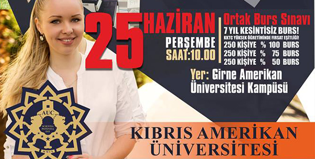 Girne Amerikan Üniversitesi’nde saat 10:00’da başlayacak sınavda başarı oranına göre 250 kişiye yüzde 100, 250 kişiye yüzde 75, 250 kişiye de yüzde 50 burs imkanı sağlanacak.
