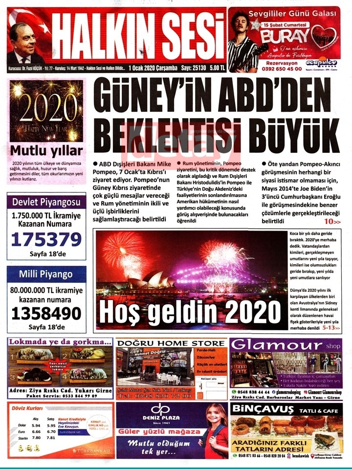 GAZETE MANŞETLERİ 1 OCAK 2020 ÇARŞAMBA