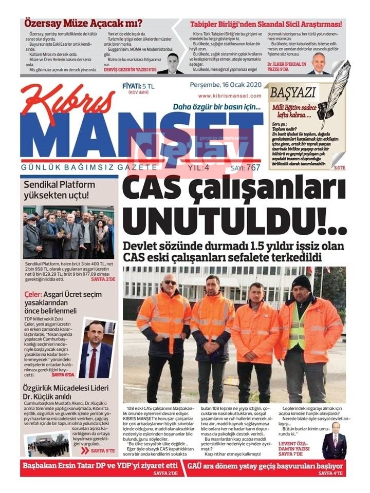 GAZETE MANŞETLERİ 16 OCAK 2020 PERŞEMBE