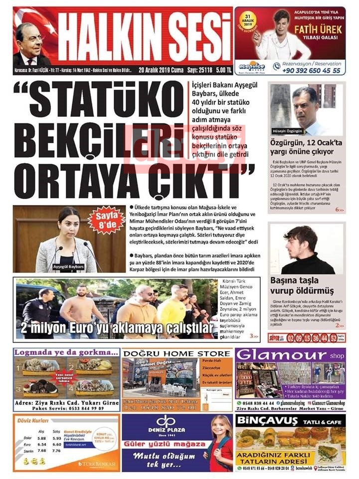 GAZETE MANŞETLERİ 20 ARALIK 2019 CUMA
