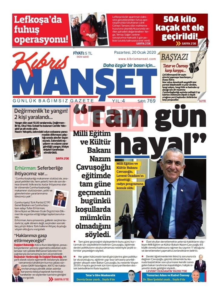 GAZETE MANŞETLERİ 20 OCAK 2020 PAZARTESİ