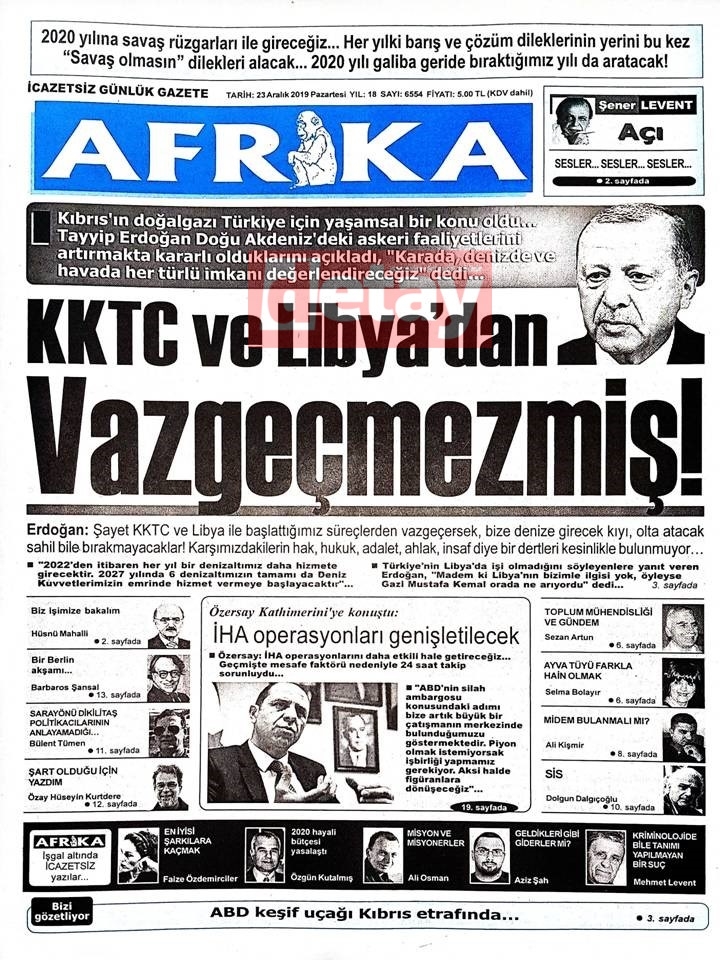 GAZETE MANŞETLERİ 23 ARALIK 2019 PAZARTESİ
