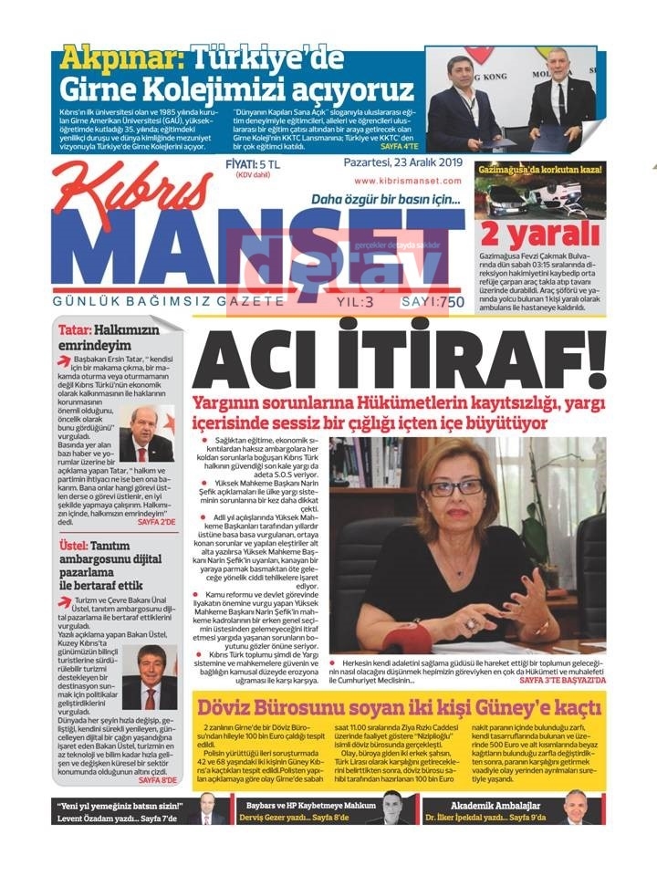 GAZETE MANŞETLERİ 23 ARALIK 2019 PAZARTESİ