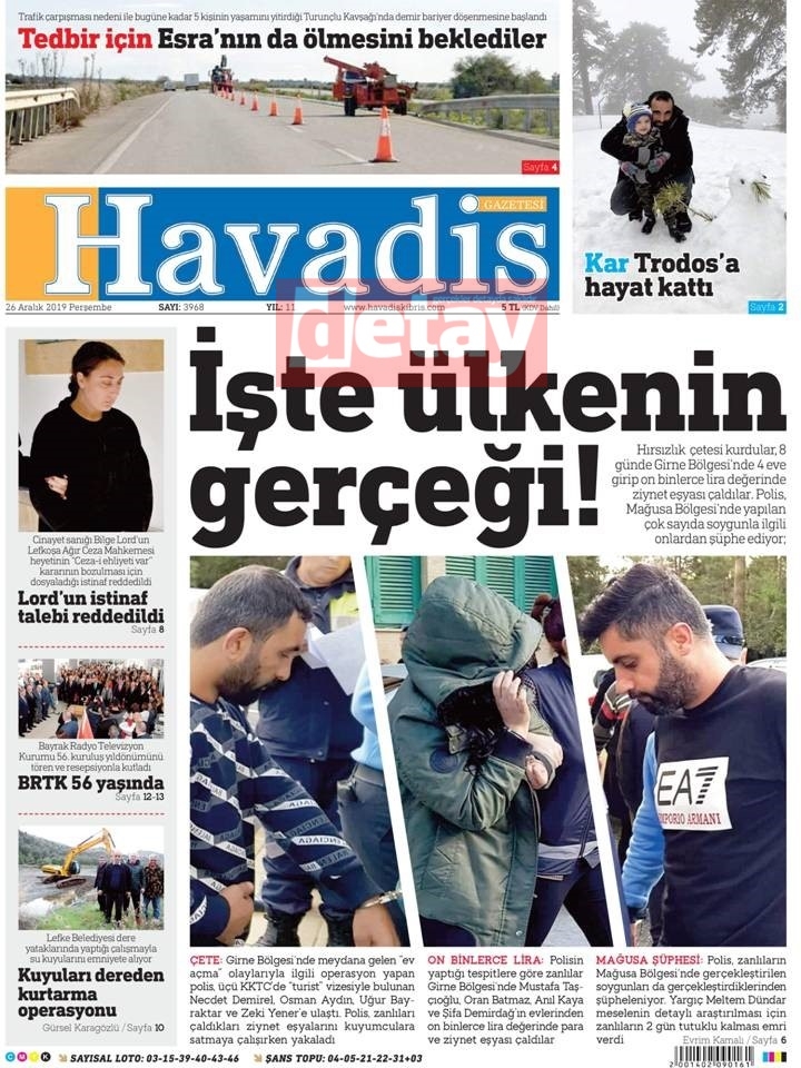 GAZETE MANŞETLERİ 26 ARALIK 2019 PERŞEMBE