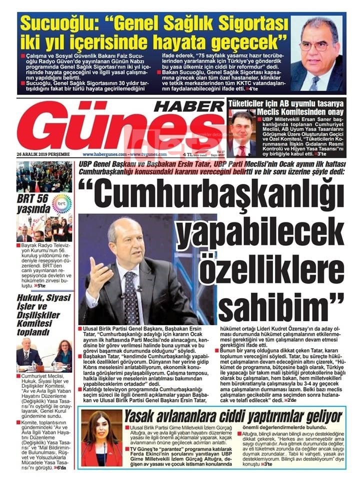 GAZETE MANŞETLERİ 26 ARALIK 2019 PERŞEMBE
