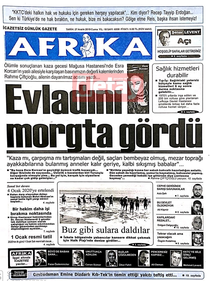 GAZETE MANŞETLERİ 27 ARALIK 2019 CUMA