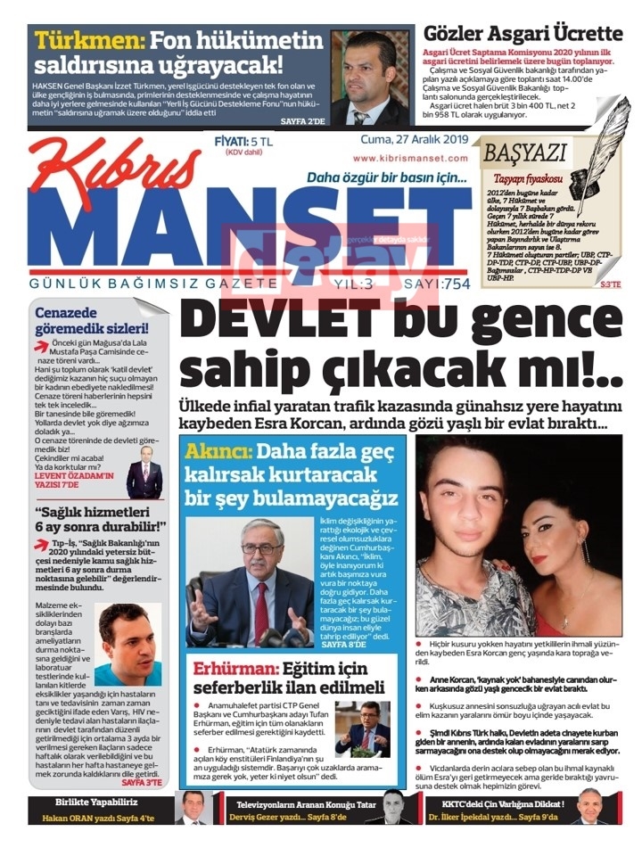 GAZETE MANŞETLERİ 27 ARALIK 2019 CUMA