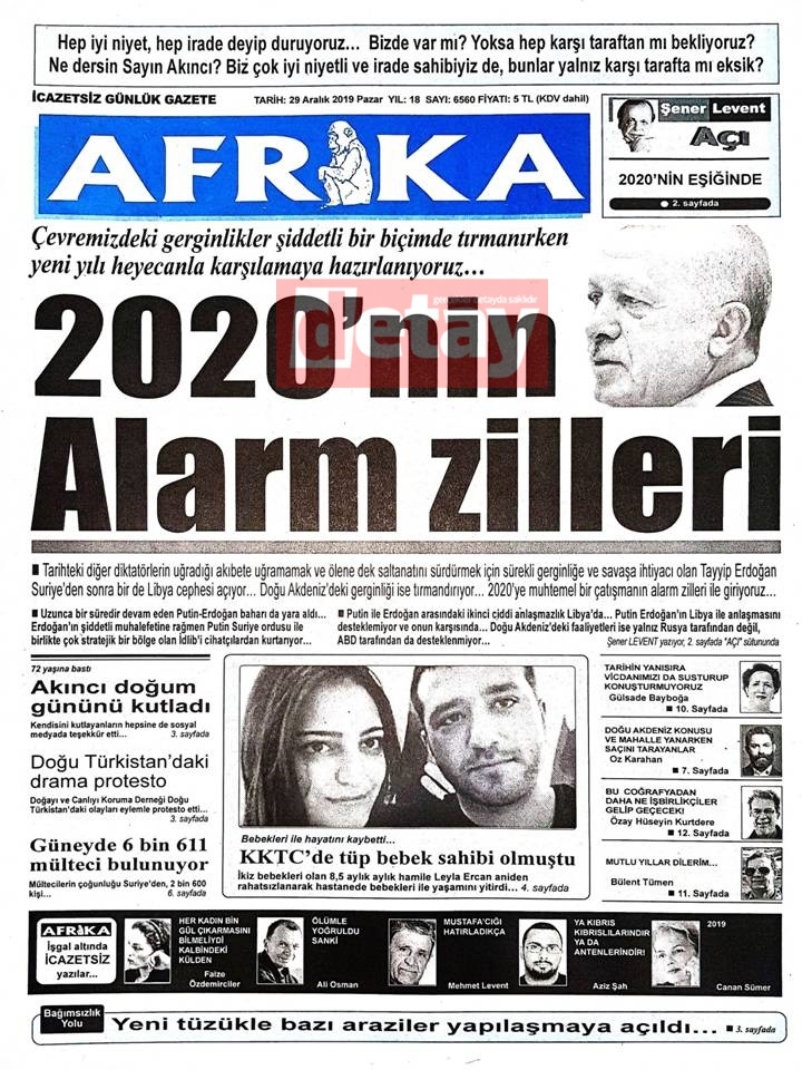 GAZETE MANŞETLERİ 29 ARALIK 2019 PAZAR