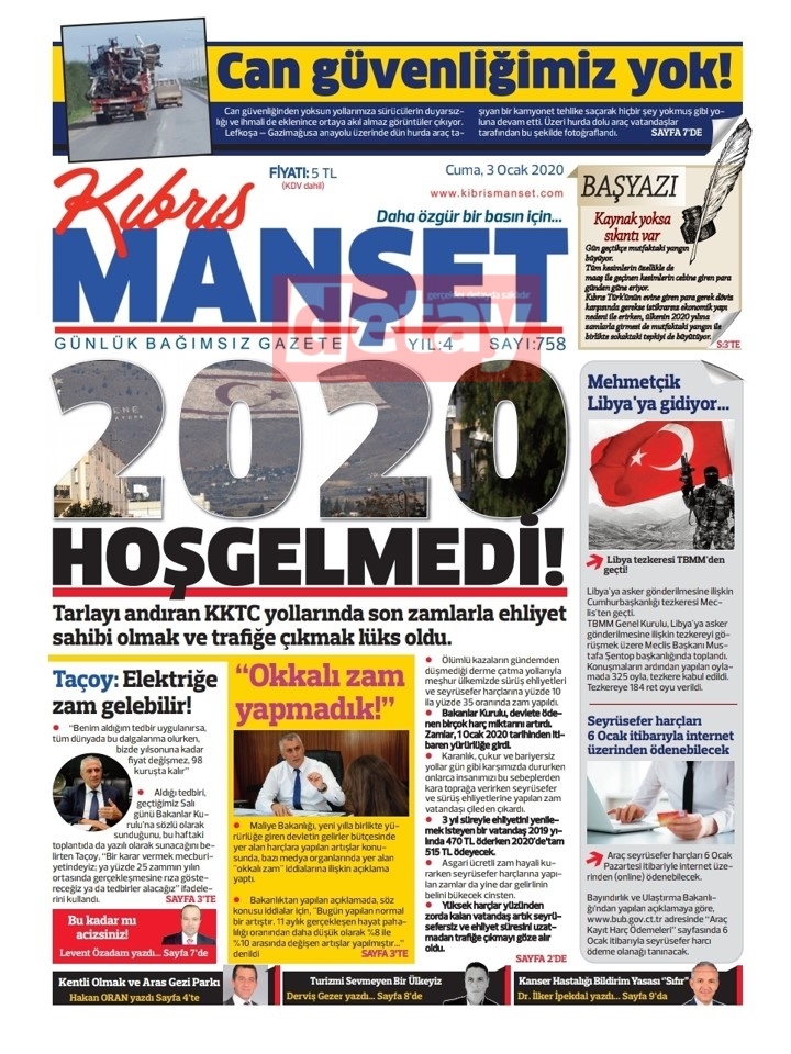 GAZETE MANŞETLERİ 3 OCAK 2020 CUMA