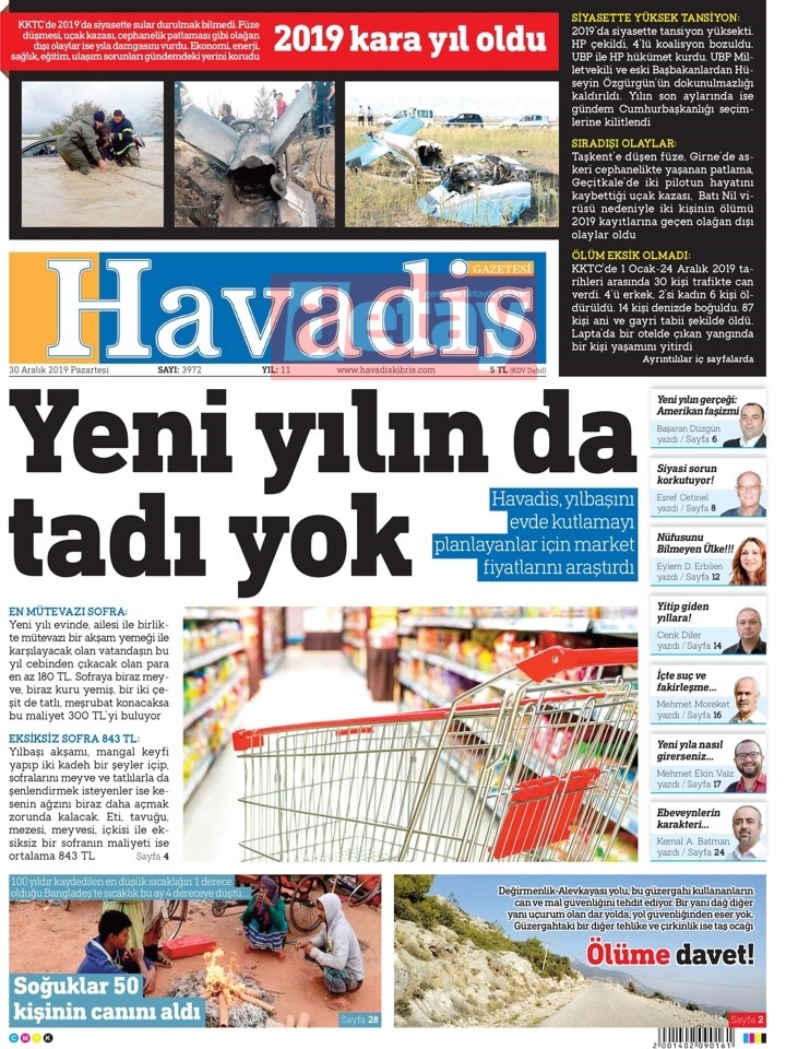 GAZETE MANŞETLERİ 30 ARALIK 2019 PAZARTESİ