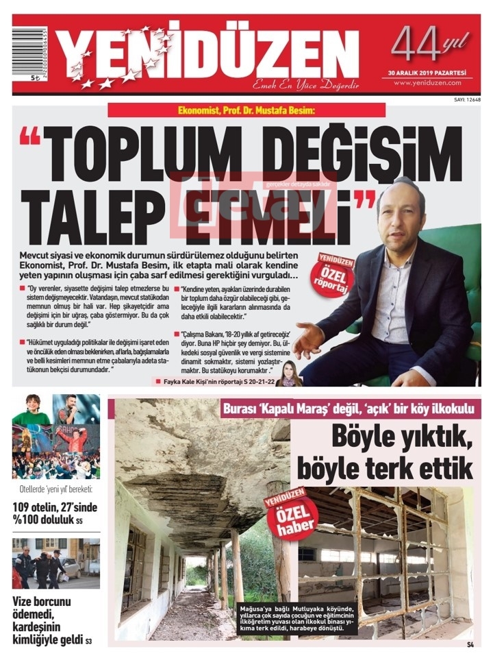 GAZETE MANŞETLERİ 30 ARALIK 2019 PAZARTESİ